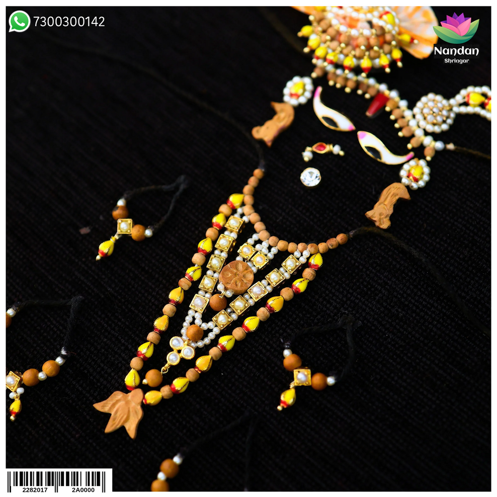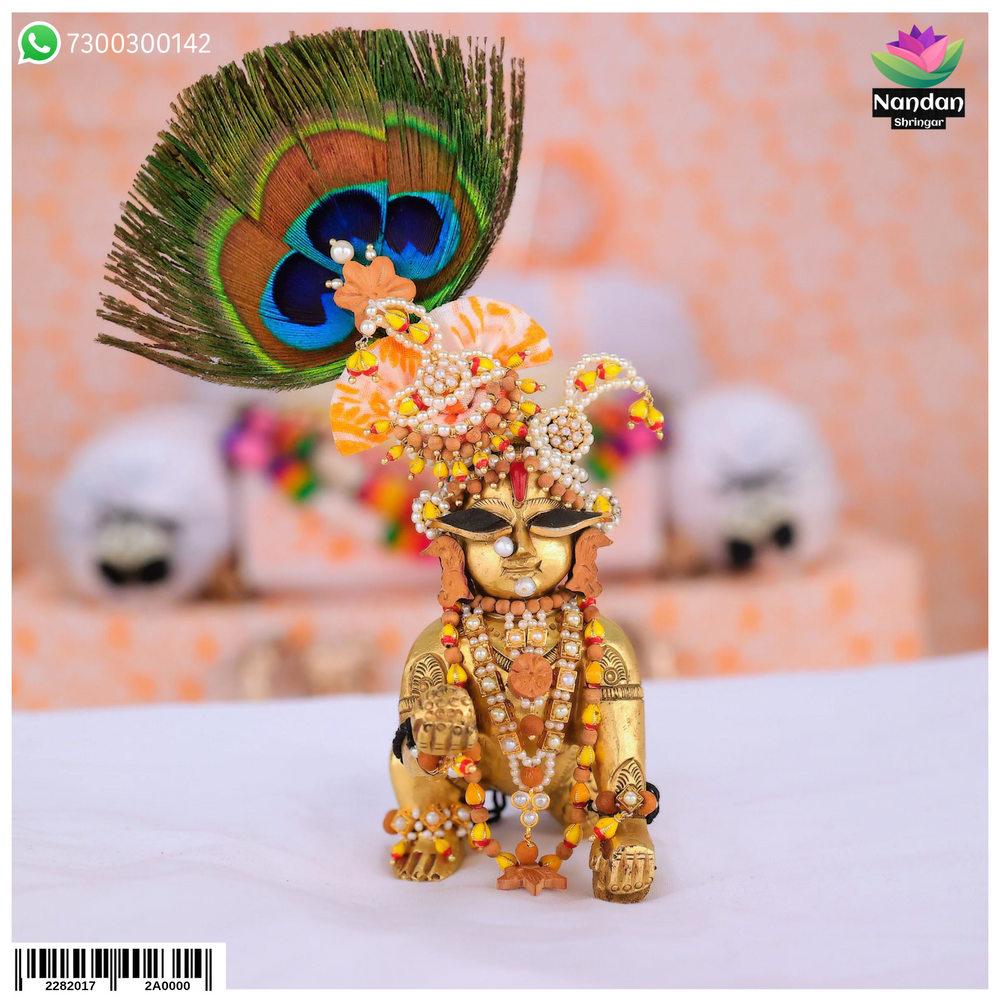 Thakurji ke Shree Mastak se Shree Charan tak ki height inch ya cm me measure karein. Agar Swaroop available nahi ho, to pehle se use ho raha Shringar ka size bata sakte hain.