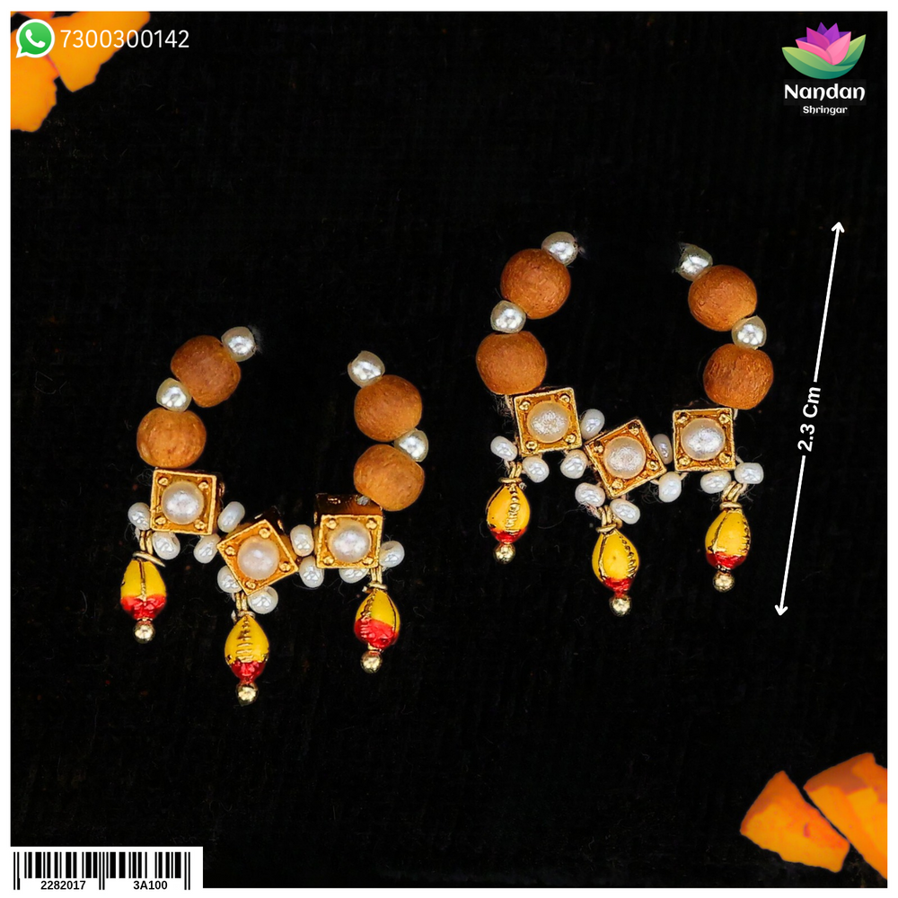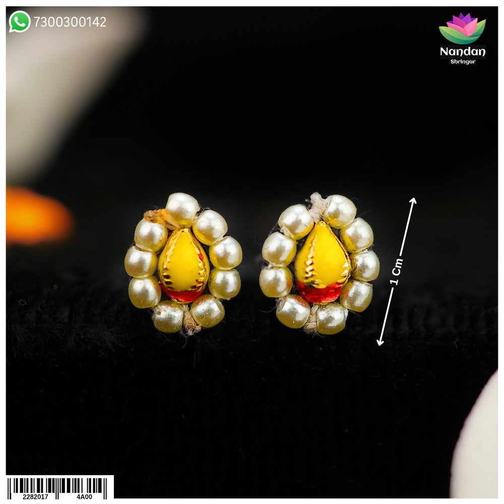 Product ke hisaab se material hota hai jaise AD, real pearl, kundan, silver polish, meenakari, etc. Detail product description me di hoti hai.