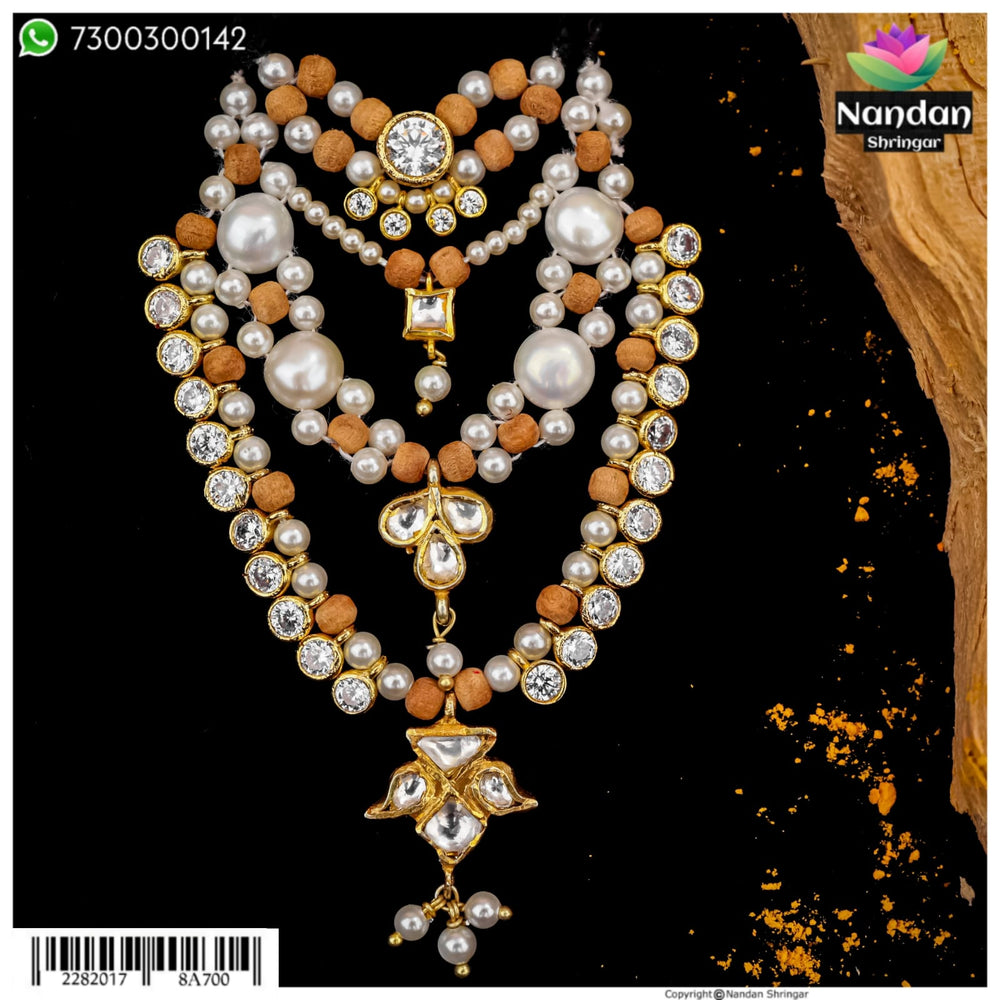 Product ke hisaab se material hota hai jaise AD, real pearl, kundan, silver polish, meenakari, etc. Detail product description me di hoti hai.